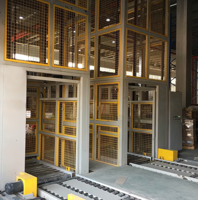 • 升降轿厢:承载货物平台,可配滚筒线、链条线、皮带线,与前后输送线自动对接。